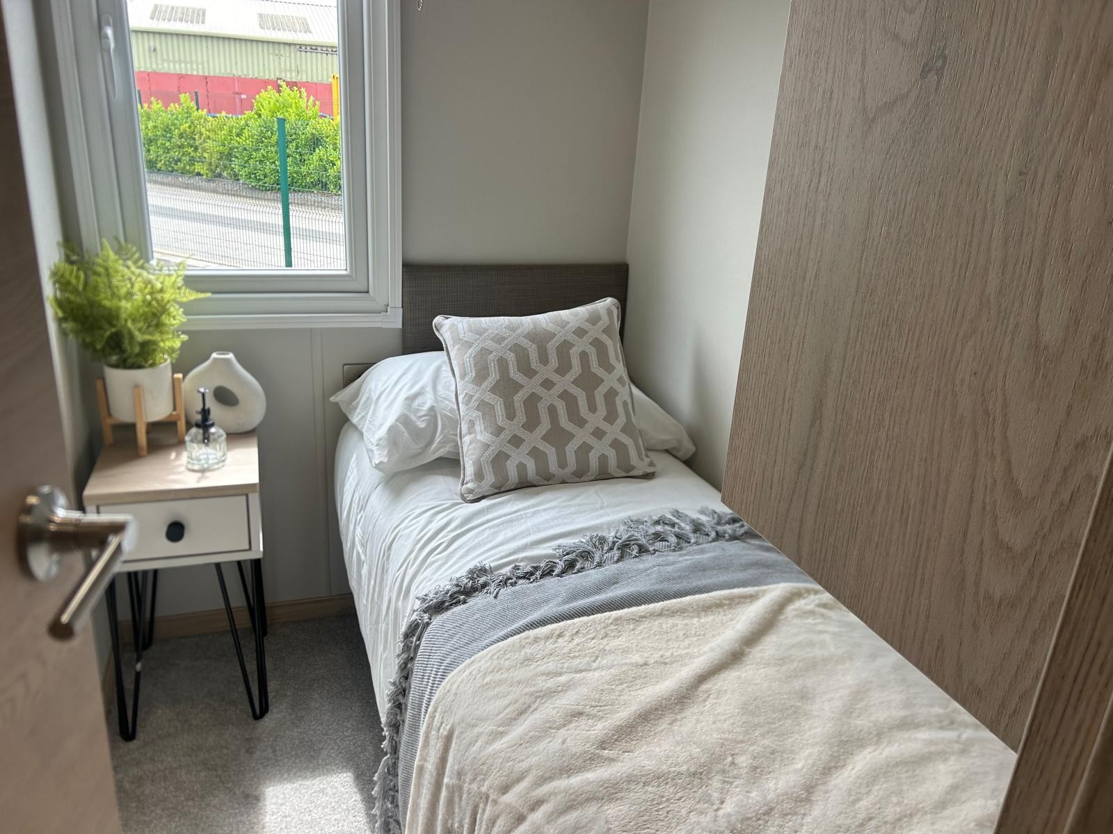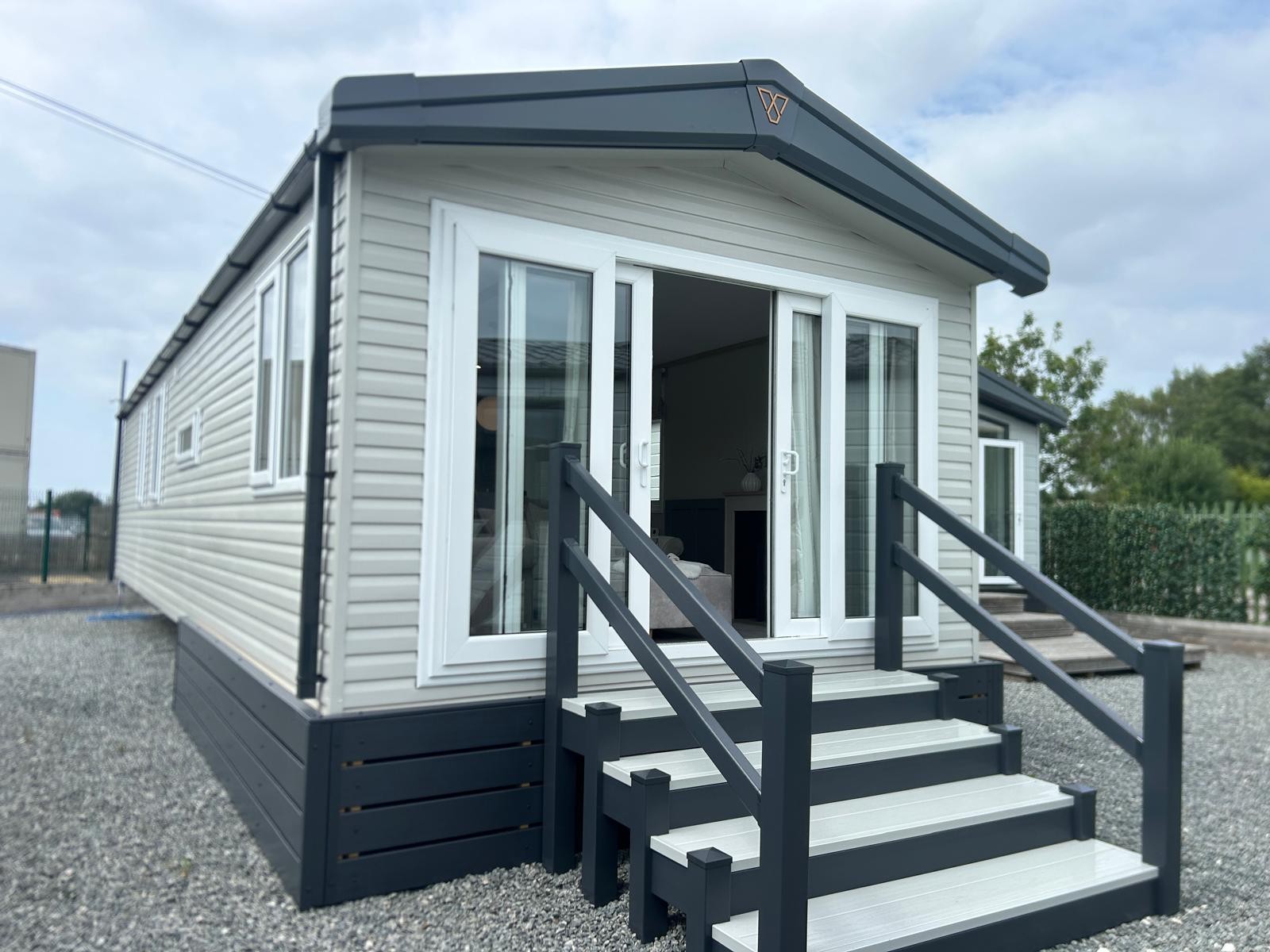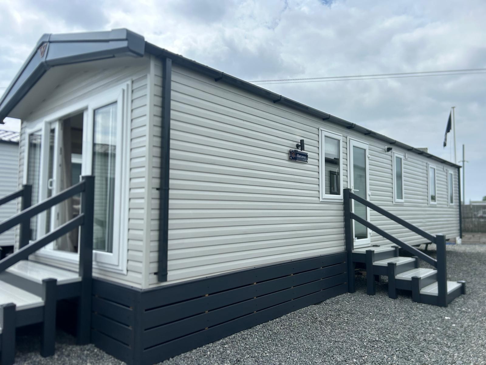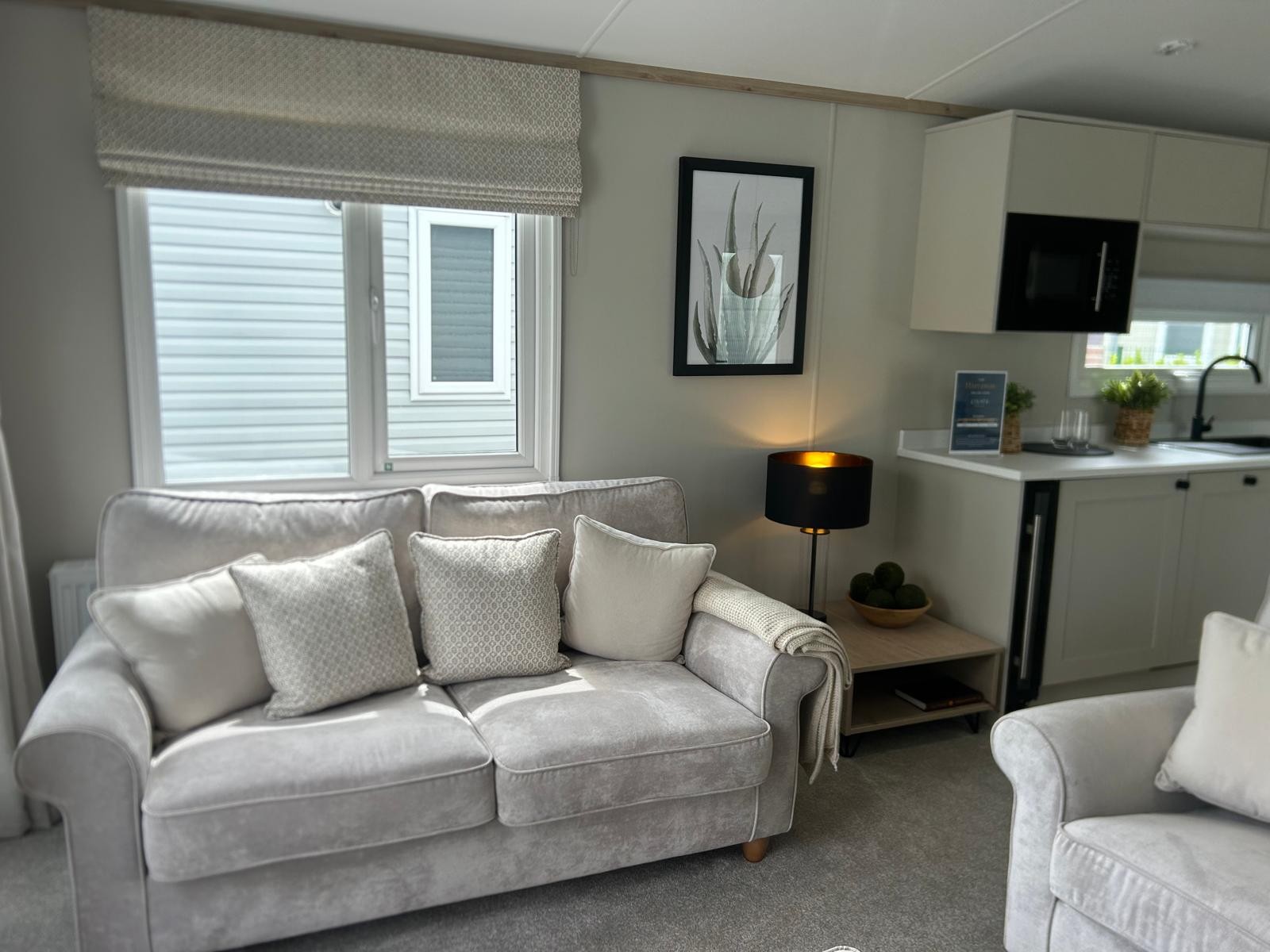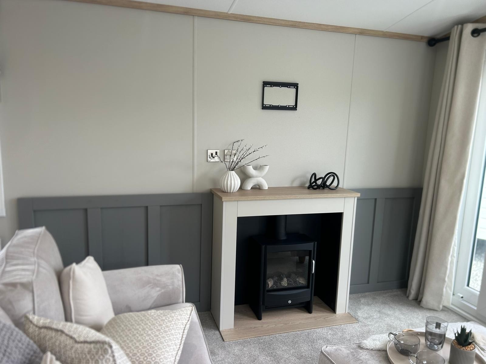 Sleek, modern cabinetry in soft neutrals are paired with a striking marble-effect splashback. Open, bright and connected to lounge area. Integrated appliances (fridge freezer & microwave) and plentiful storage Dining table framed by cosy upholstered chairs sits at heart of the open space Two freestanding soft neutral sofas and fireplace with room to fix tv on wall above Bedrooms Spacious master bedroom features a generous double bed with a statement headboard, mirrored wardrobes and stylish dressing area One twin room, and 2 single bedrooms ensuring privacy and flexibility, making it ideal for family, friends or guests. Bathrooms Modern design with everyday comfort- sleek vanity unit with countertop basin, matt black fixtures and a generous mirror. Two showers in this caravan. |